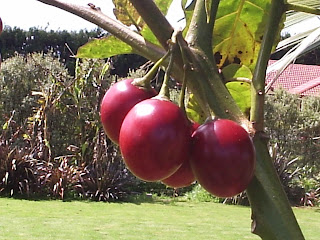 From a wee seedling, and against the odds my tamarillo (aka tree tomato) has finally born fruit. With any luck my second plant will follow in its foot steps (roots?). I only need two dozen red orbs to make my friend's tamarillo chutney - an original recipe from the NZ Womens Institute 1934 (2 doz tamarillos skins removed, 1 pound apples diced, 2 pounds onions, 2 pounds brown sugar, 1 pint vinegar, 1 ounce salt, 2 ounces mixed all spice, 1 teaspoon cayenne pepper. Combine all ingredients and boil for one hour before bottling in sterilised jars).
