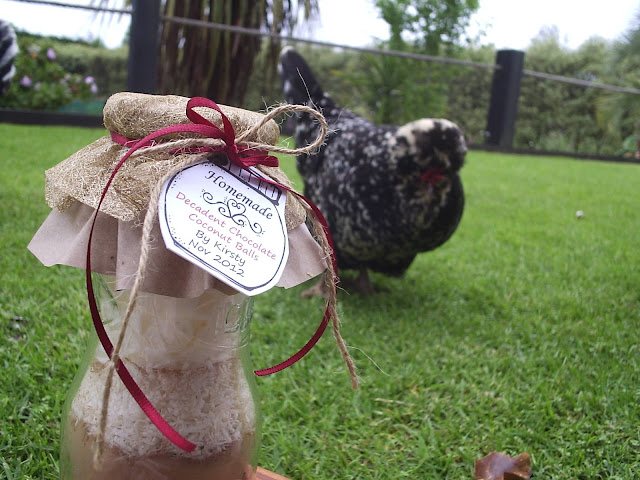 Here's my Chocolate Coconut Truffle recipe: layer one packet of crushed milk arrowroot biscuits (or similar), 1/3 cup of cocoa powder, 1/2 cup dessicated coconut. Finish recipe by combining dry ingredients with 1 tin (395gms) condensed milk and optional teaspoon of rum essence. Roll into balls and chill (or scoff on the spot!)
