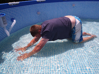 The sparkling blue water in the newly erected pool not only keeps the husband busy,