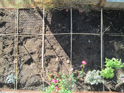 The summer drought meant I couldn't plant anything for a while and I pretty much pulled everything out of the garden and have a big bare patch to experiment with. So having spread out the results of my composting endeavours the other week, I spent yesterday measuring and diving my plot into square feet. Well to be honest there was no measuring just a kind of eyeing up and wading in with string and ties just to get the job done. But I am operating on the home spun Ripple Bay philosophy that sometimes it is better to get on with things or I never get off the starting blocks if I plan for too long!
