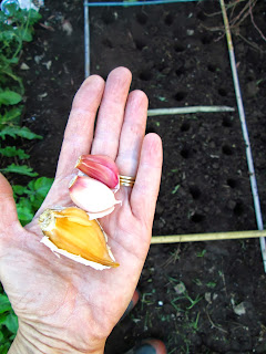 At last! I got the garlic planted in the square foot garden, 24 cloves in 2 squares, bit cramped, bit late, but never mind we must do what we can! On the age old premise that we plant on the shortest day and harvest on the longest, I am extraordinary late and must harvest extraordinary late, but that's how it goes sometimes. Happy planting! Blue xxxx