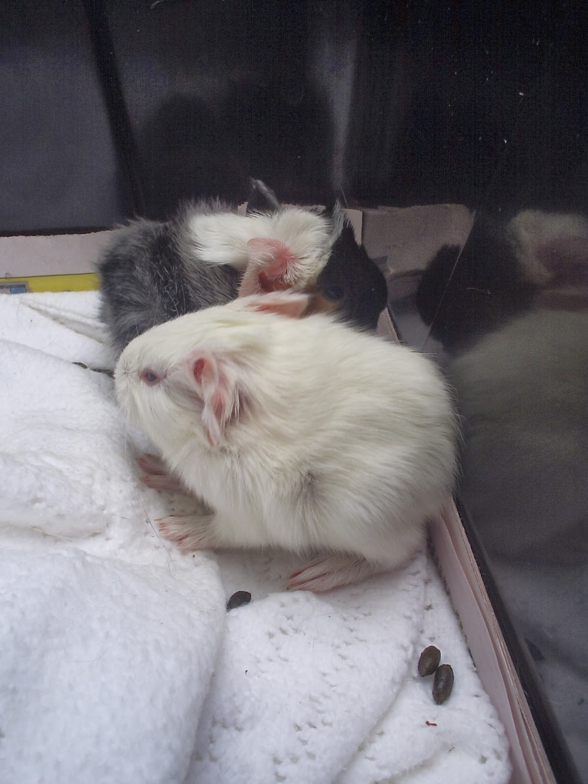 The first to arrive - Bob (the white one) has given his mother no end of trouble. She only has to venture a few foot steps (paw steps?) away and off he goes - SQUEAK, SQUEAK, SQUEAK.